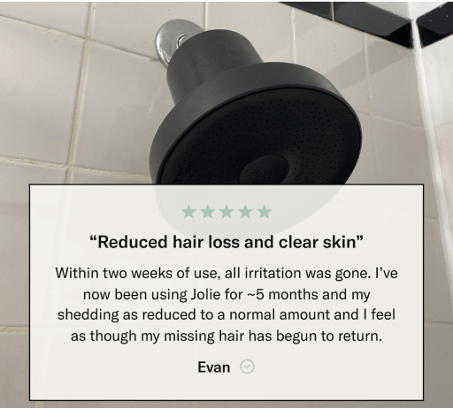 Loving my new Jolie filtered shower head! My daughter recommended this to me after I had been telling her how bad my hair had been shedding . She had been using it for a while and said it helped her. After using the head for a week my shedding decreased and my skin felt less dry. Even my husband noticed my hair was no longer everywhere! .